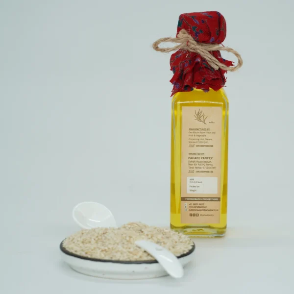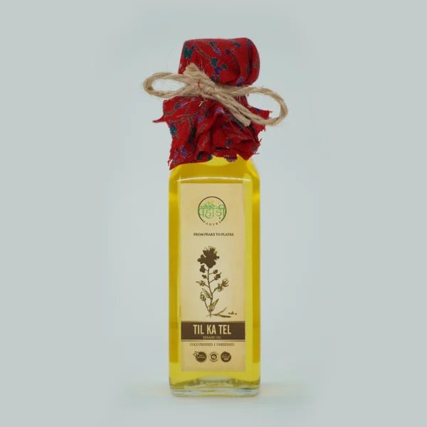 Pahadi Pantry’s Til Ka Tel is made from pure hill-grown sesame seeds using traditional methods. Its rich aroma and natural nutrients make it ideal for everyday cooking and wellness.